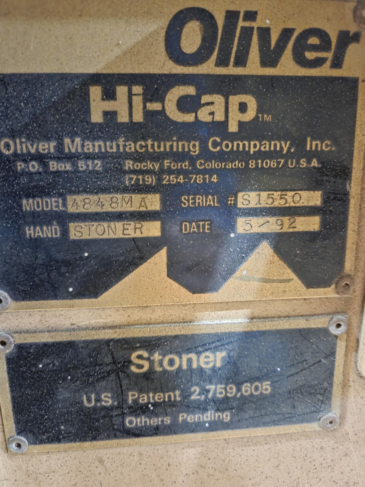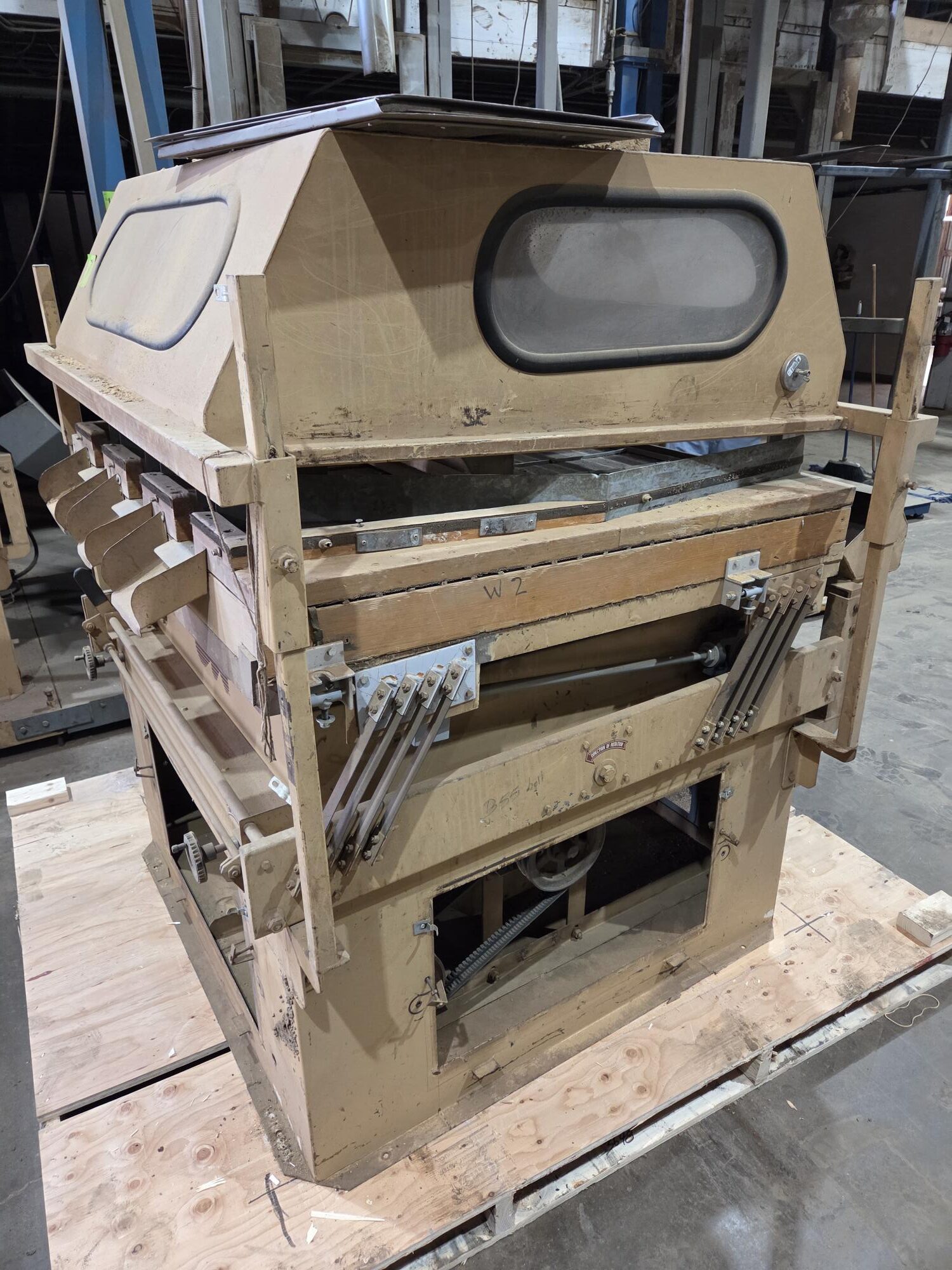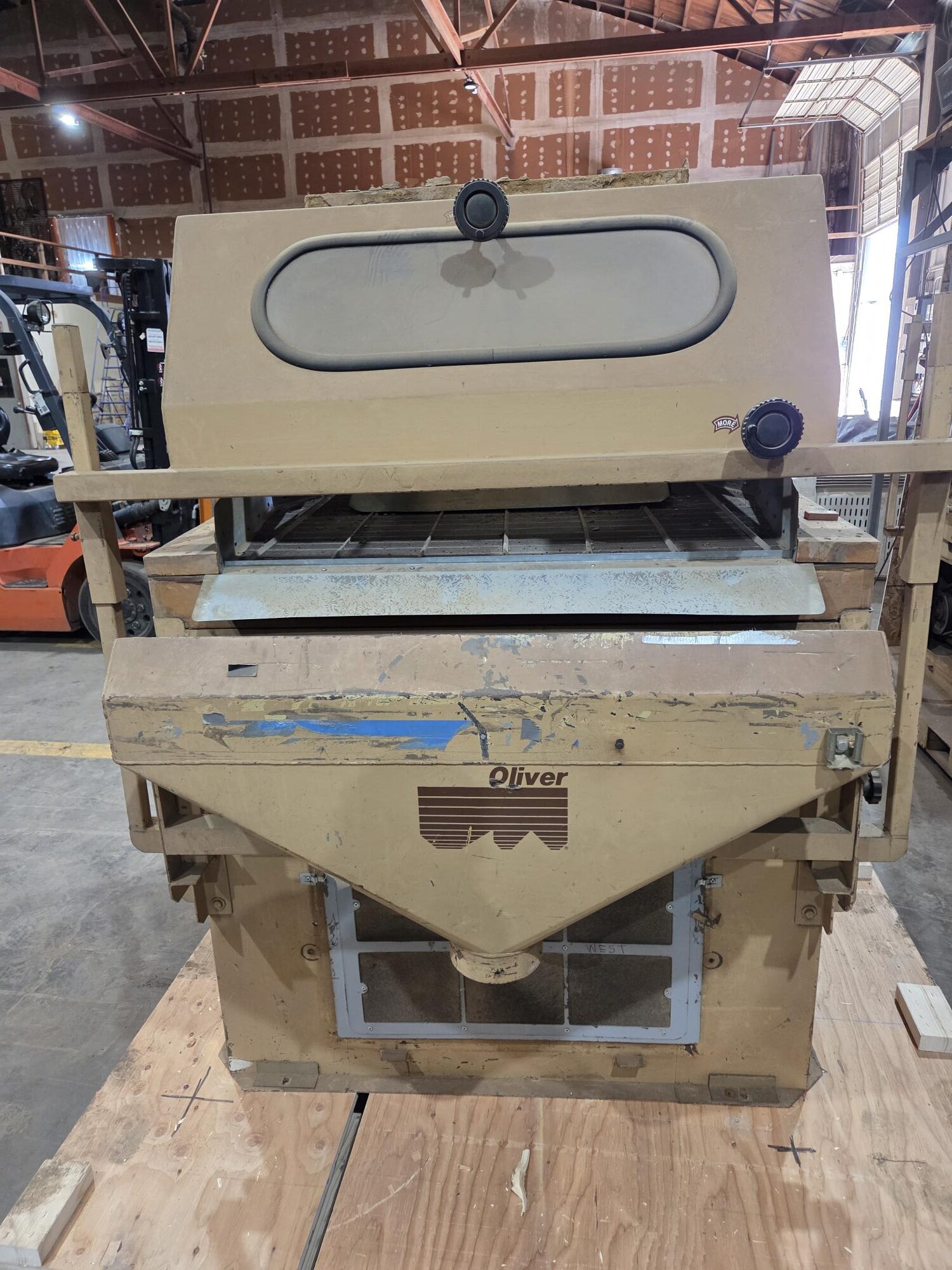 Used Oliver Manufacturing Model 4848 Destoner with 16×16 Mesh Overcover and Dust Hood.